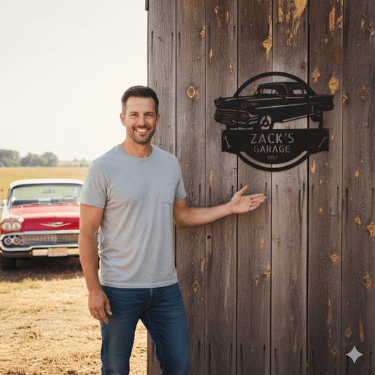 1957 Bel Air Garage Sign – Personalized Metal Classic Car Wall Art for Dad’s Workshop