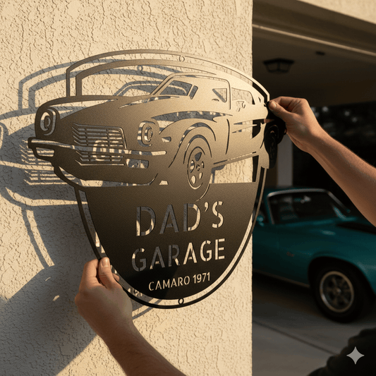 Personalized Camaro 1967 Garage Sign | Custom Car Metal Wall Art – Classic Muscle Car Gift for Dad or Garage Owners
