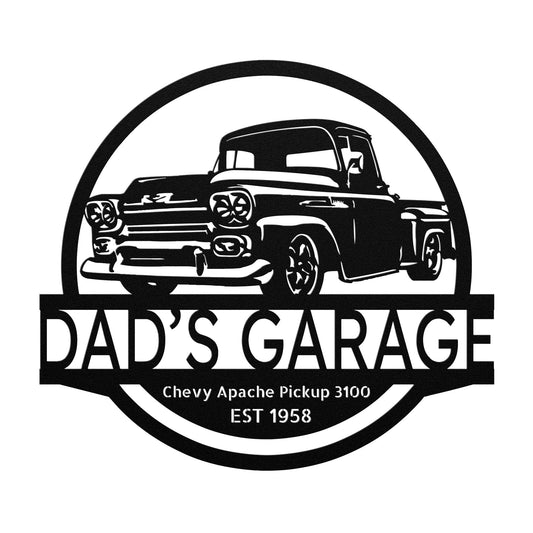 CAR GARAGE SIGN - Custom Car 1958 Chevy Apache Pickup 3100 Steel Monogram Sign