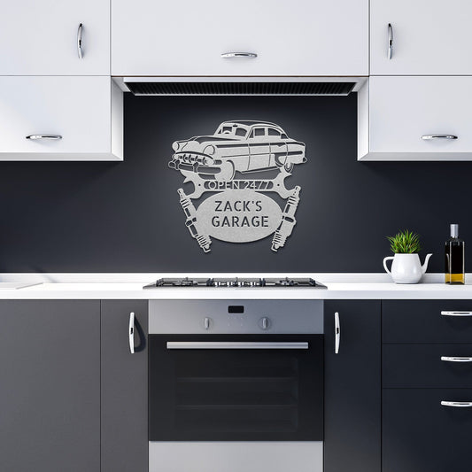 CUSTOM GARAGE SIGN - Personalized 1950 Chevy Bel Air Steel Monogram Sign