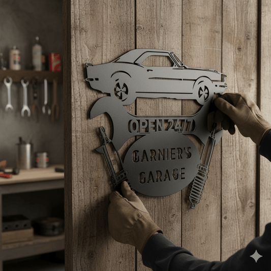 HOT ROD WORKSHOP SIGN - Customized Car Garage Monogram Wall Art Décor