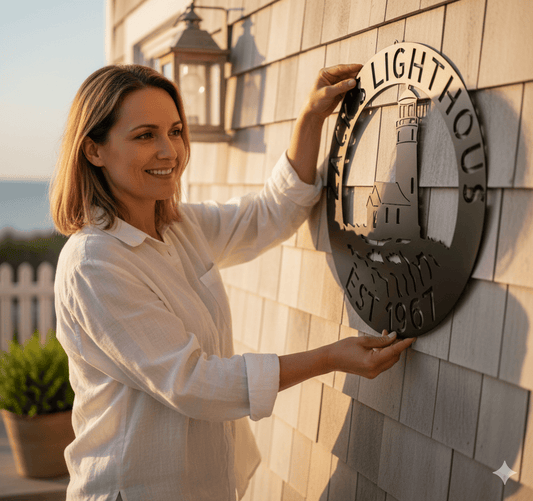 Custom Metal Family Name Sign - Personalized Outdoor Lighthouse Design