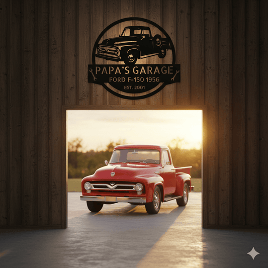 CAR GARAGE SIGN - Customized Car Ford-F-100 Established Date 1957-1960