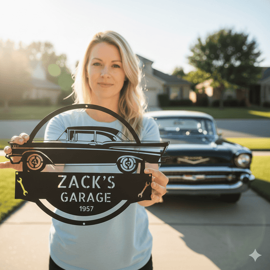 1957 Bel Air Garage Sign – Personalized Metal Classic Car Wall Art for Dad’s Workshop